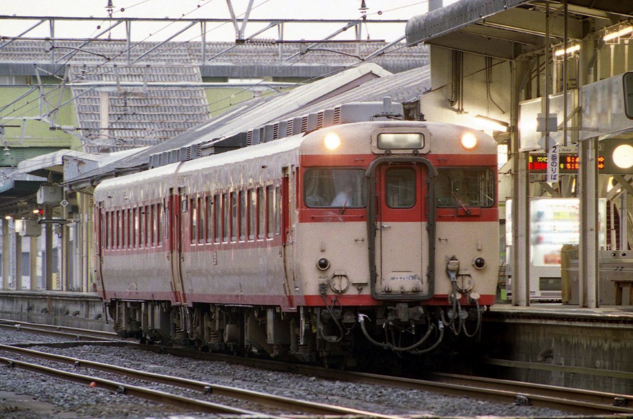 米子・小倉・・・1990年代(急行さんべの運行末期の頃)には、広島支社管内を走るため、広島急行色の「グリーン」になりました。急行「ちどり」「みよし」「たいしゃく」もこの色でした。1997(平成9)年11月30日廃止その後、臨時急行で走ったことも・・・