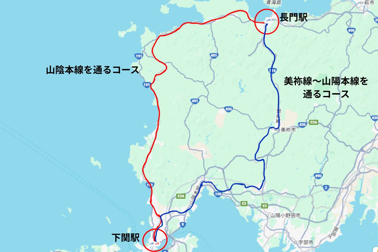 2つ目は・・・美祢線~山陽本線を通るコース