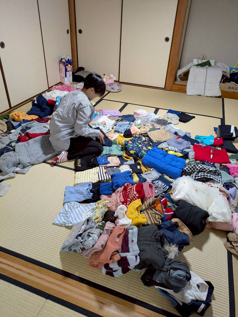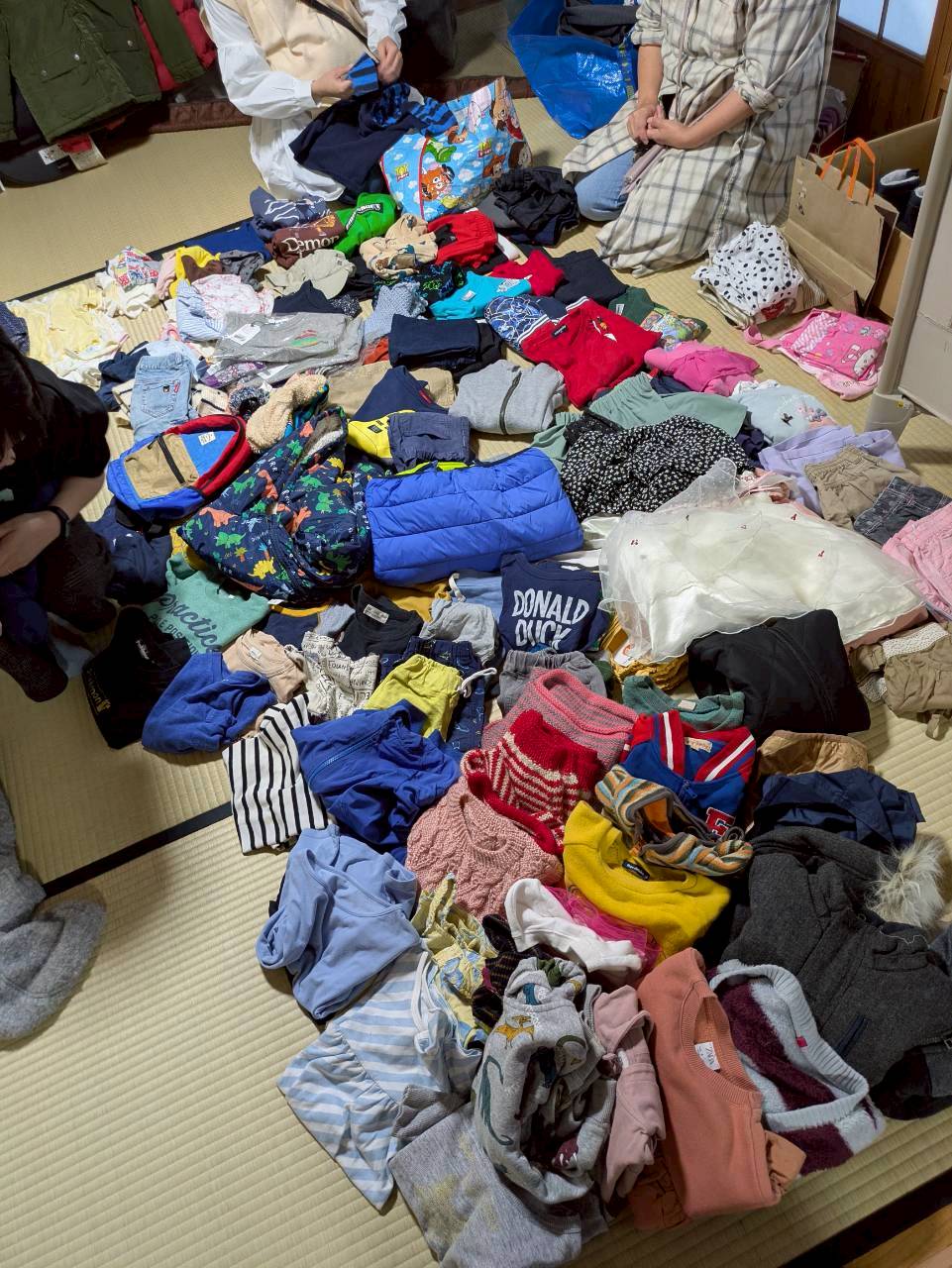 この日も、服だけでなく靴やミルク、紙おむつ、ベビーベットやチャイルドシートなどが和室いっぱいに並べられていました。