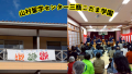 体育館にお囃子が鳴り響き、お子様や買い物客も足を止めてたくさんの人が見ていました。