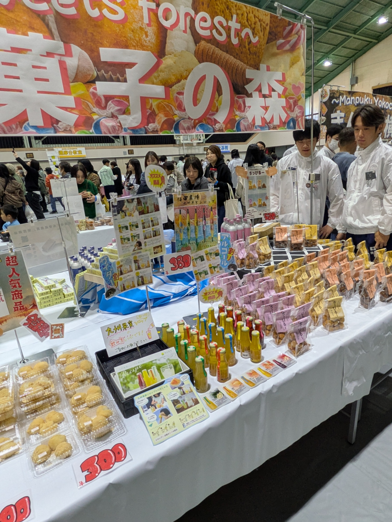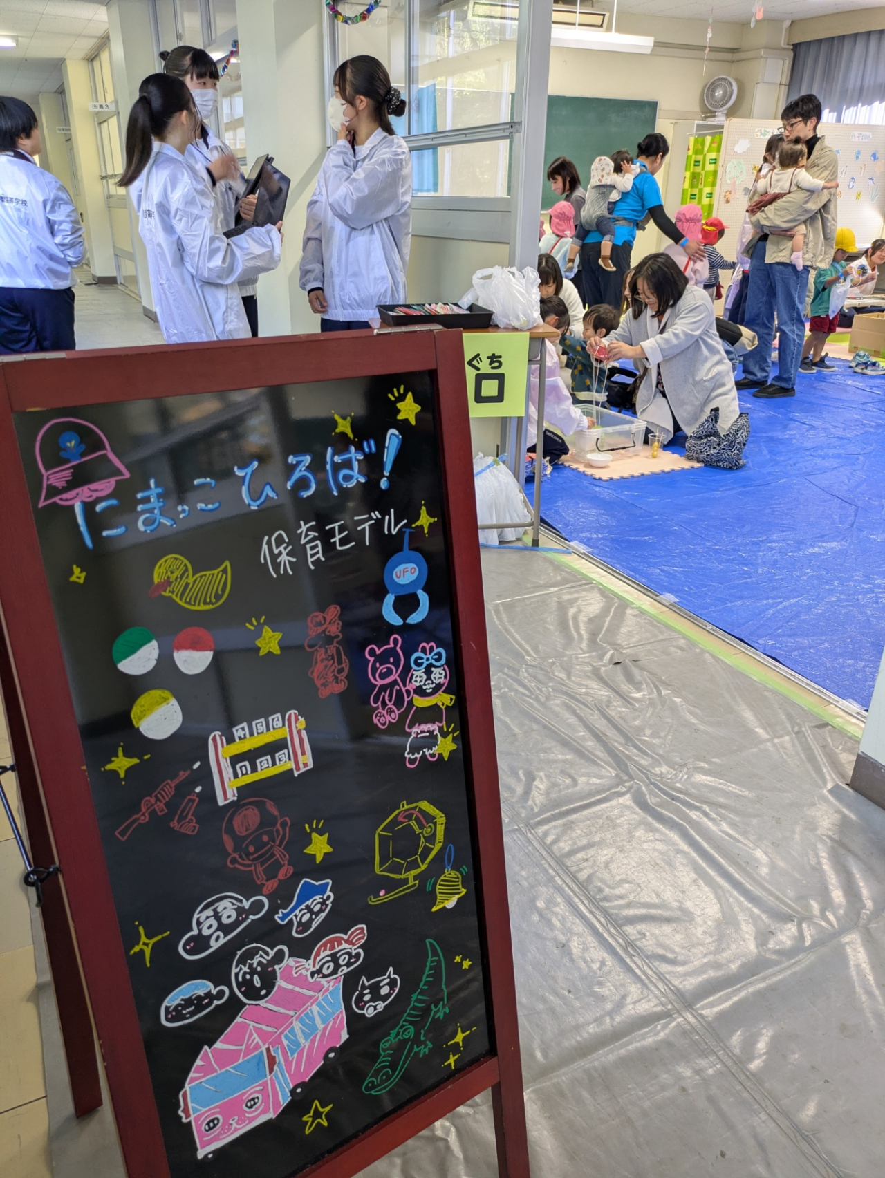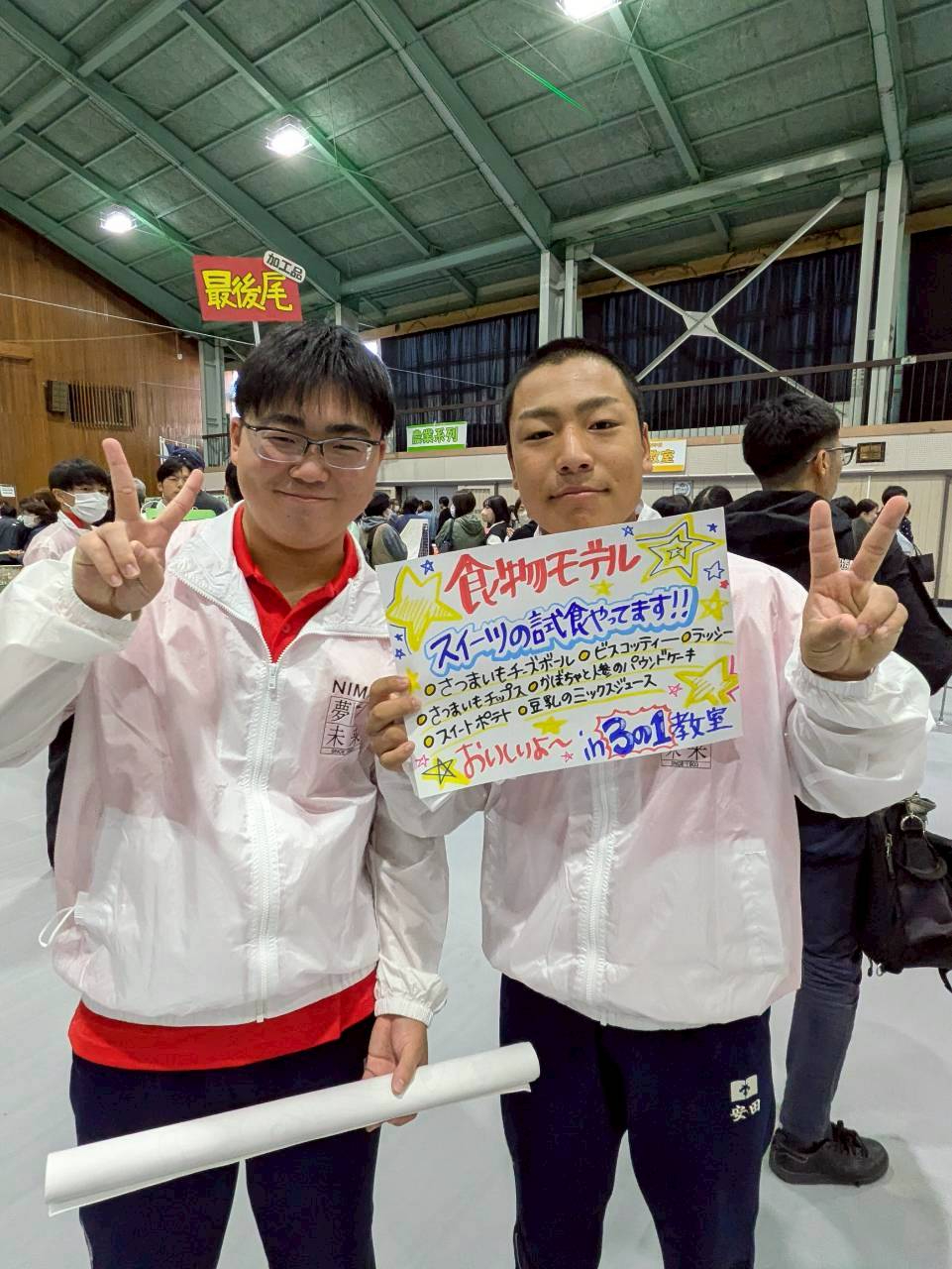 3年生教室では「食とこども系列」の野菜を使ったスイーツ、子ども向けの「にまっこひろば」、「みらいビジネス系列」の飲食エリアなどもにぎわい、食物モデルの展示を通じて学習成果が伝わりました。