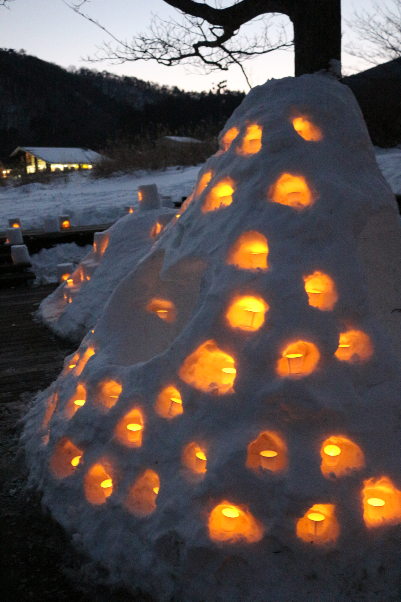 雪遊びや雪像コンテスト、たくさんの雪あかりがありました。